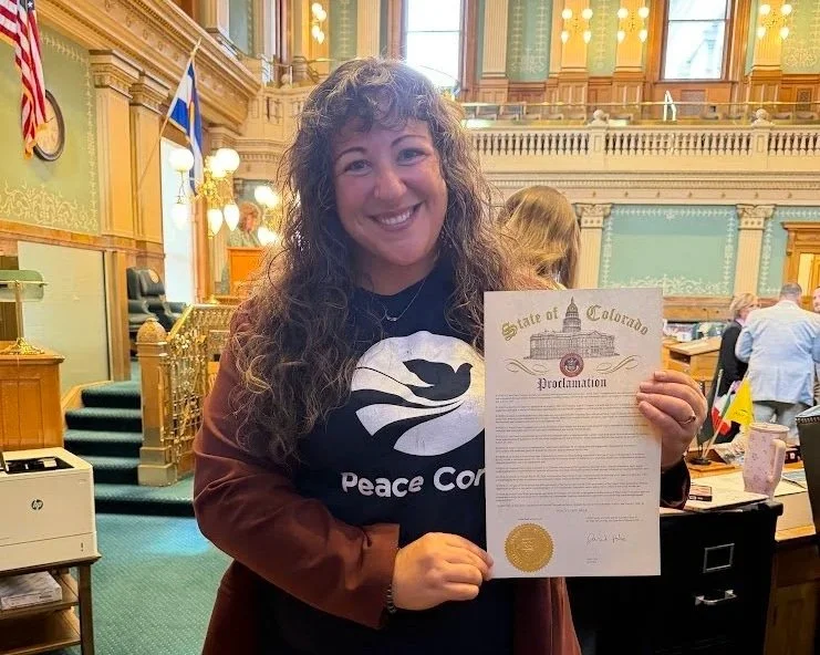 During Peace Corps Week, Janina was honored at the Colorado State Capitol in recognition of her continued commitment to international development, leadership, and community-building. The recognition highlighted the lasting impact of Peace Corps values in shaping leadership and service.